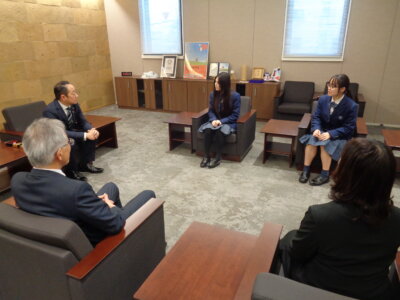 全国高校生花いけバトル2024広島大会で香川高校華道部2年生チームが優勝し、篠崎市長を表敬訪問しました。