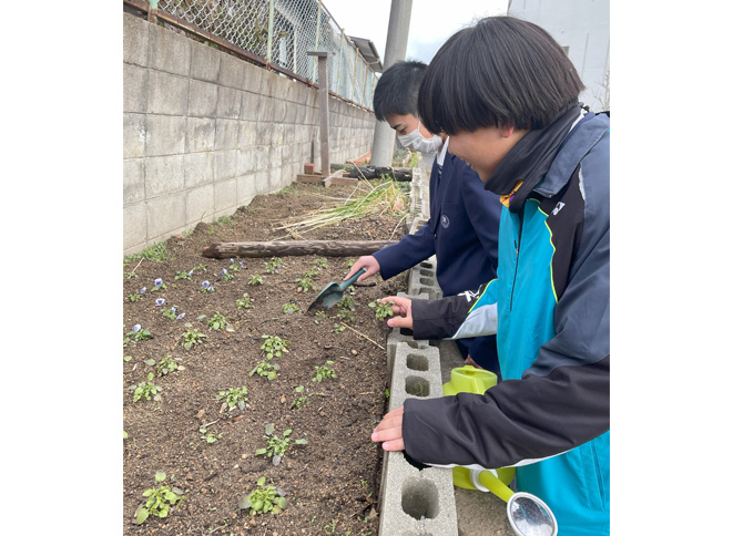 主な活動は、校内の除草作業や植物の手入れ、学校近辺の清掃作業をしています。